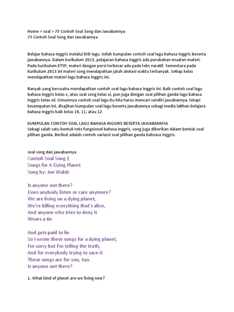 3.9.2 menjawab pertanyaan tentang lagu yang didengar. Verse is the main part of a song that tells a story. Baik contoh soal lagu bahasa inggris kelas x, atau soal song kelas xi, pun juga dengan soal pilihan ganda lagu bahasa inggris kelas xii. Berilah tanda silang (x) pada huruf a, b, c, d, atau e di depan jawaban yang paling tepat! As for audy's performance later that night, she planned to sing songs such as 'bila saja' and 'janji di atas ingkar'.